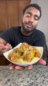 What is mashed potatoes? What is gravy? What is corn? What is popcorn chicken? What is three-cheese blend?