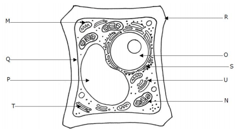 name the organelle labeled P