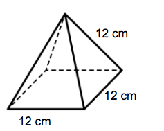 Find the surface area of of a square pyramid with a base length and width of 12cm and the side lengths of the lateral faces are all 12cm.