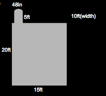 There is a chimney that is five feet tall and has a diameter of 48 inches. The house that it is attached to is twenty feet tall, has a width of ten feet and a length of fifteen feet. What is the overall volume? (Round to nearest tenth)