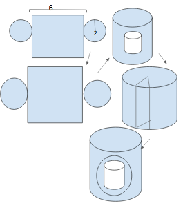 The outer shape is a cylinder with a radius of 6 and a height you can find with this equation if the area of the cube is equal to n. H=(n+10)÷2+1