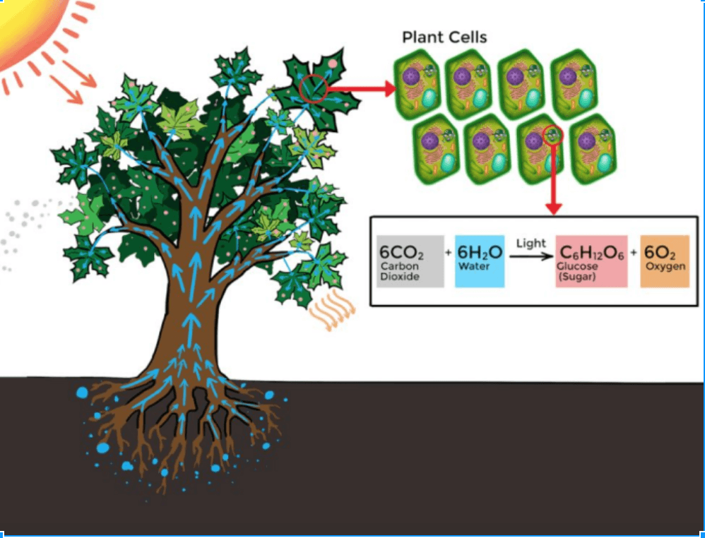 Water (6H2O), Carbon Dioxide (6CO2), and light energy