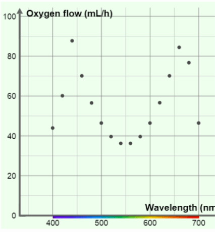 If the chlorophyll were red, red light would produce the lowest rate of photosynthesis. Red would be reflected from the leaves, which is why they appeared red, while all other colors are absorbed. Because red light would not be absorbed by chlorophyll, photosynthesis would not work.