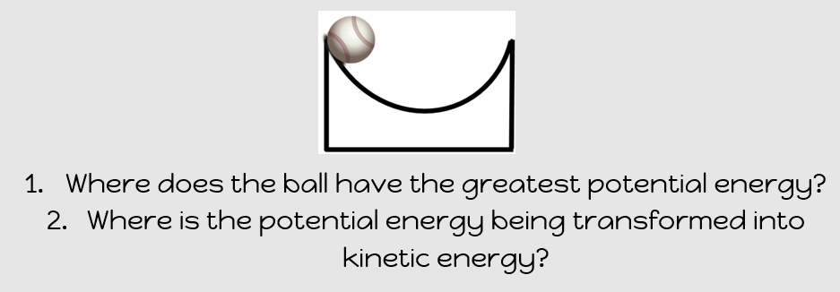 2.The potential energy is transforming into kinetic energy at the base of the slope.