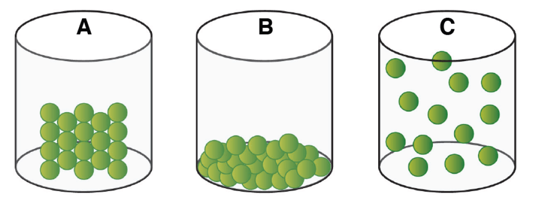 Explain where a solid, liquid, or gas are in each of these scenerios: