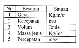 Besaran di atas yang diturunkan dari besaran panjang dan massa adalah ….