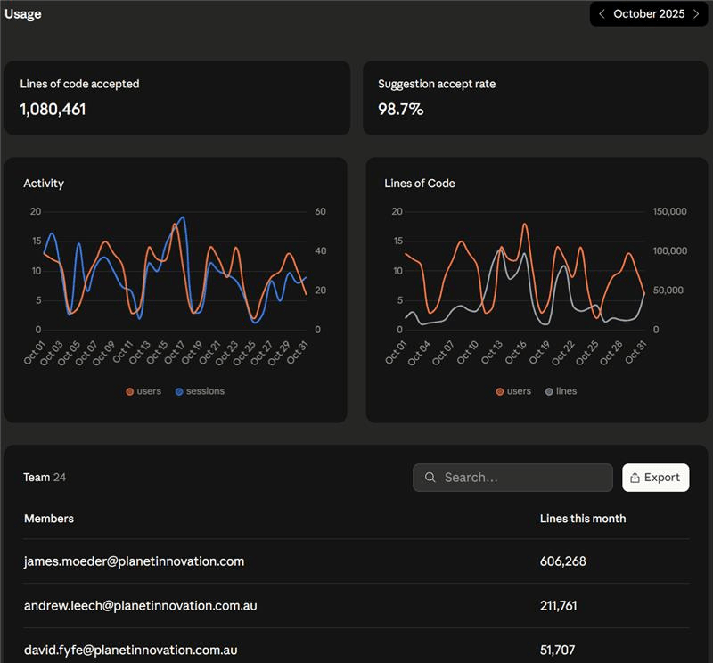 Closest Guess (NO NEGATIVE POINTS!) - Using Claude Code, how many lines of code were accepted by PI members last month (October 2025)?