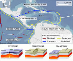 A tectonic boundary where two plates are moving away from each other and new crust is forming from magma that rises to the Earth's surface between the two plates. The middle of the Red Sea and the mid-ocean ridge (running the length of the Atlantic Ocean) are divergent plate boundaries.