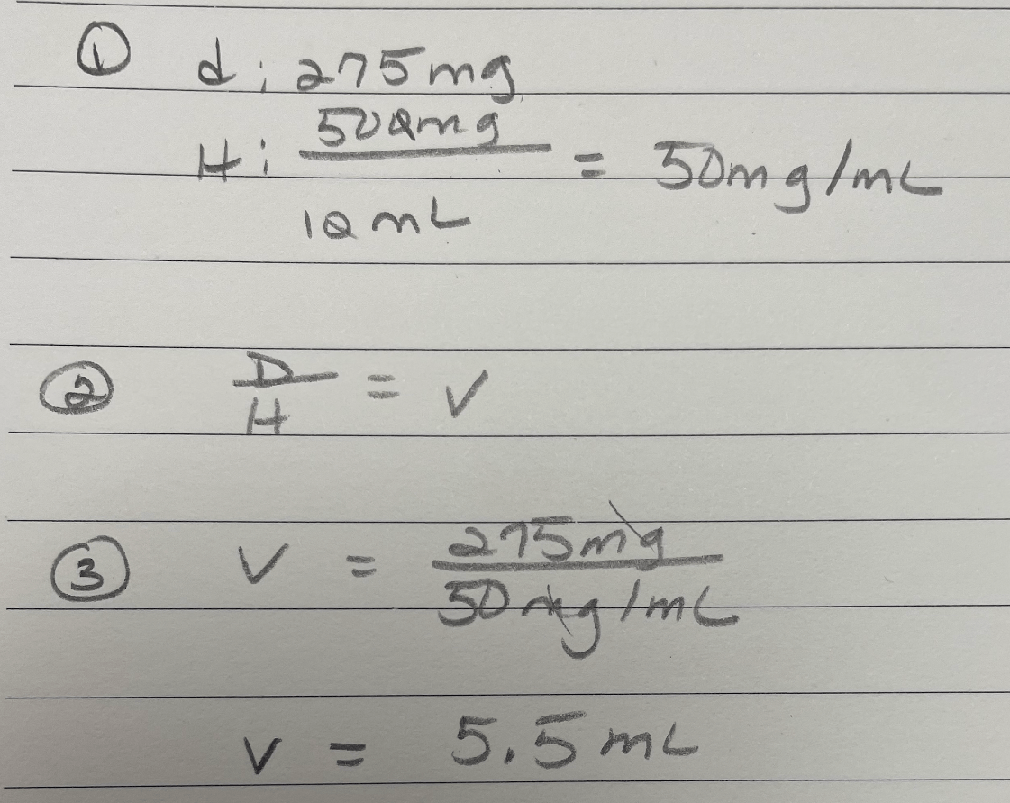 What is 5.5 mL (275 mg / 500 mg * 10 mL)?