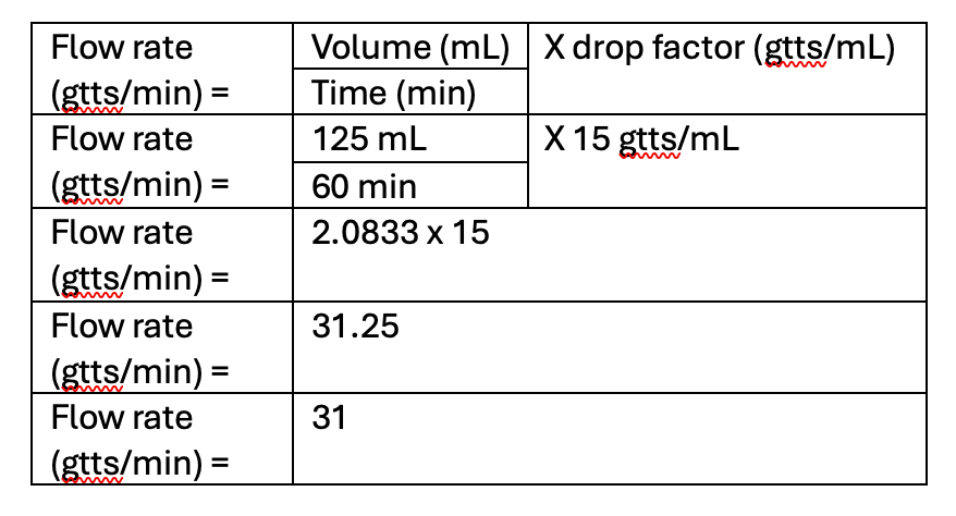 What is 31.25 gtt/min (or 31 gtt/min, rounded)?