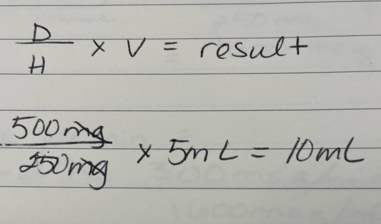 Order: 500mg. On hand: 250mg/5mL. How many mL do you administer?