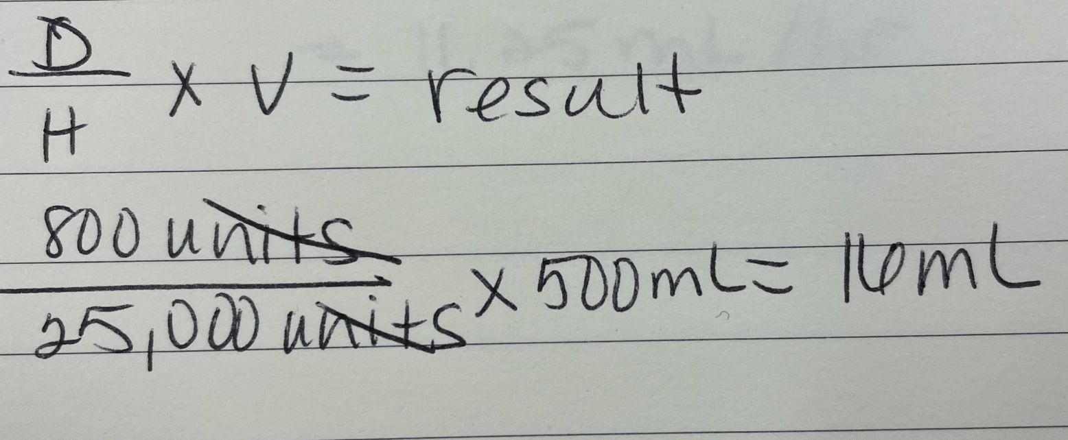 Order: Heparin 800 units/hr. Concentration: 25,000 units in 500mL. Find the mL/hr.