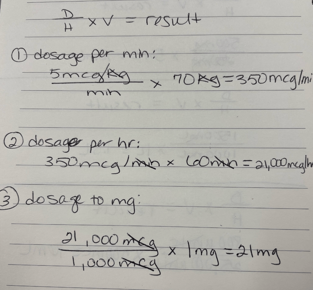 Order: 5mcg/kg/min. Weight: 70kg. How many mg will the patient receive in 1 hour?