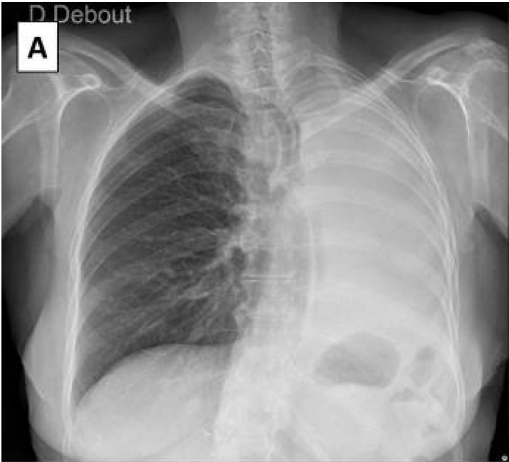Alectasie, et ouais les diagnostics différentiels peuvent exister, on le voit car la déviation médiastinale est du côté de l'opacité