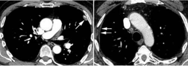 des plaques pleurales, apparaissant PARFOIS lors de l'exposition à l'amiante, elles ne permettent ni de poser le diagnostic ni de l'éliminer mais permettent de s'orienter