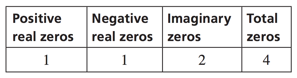 Determine the possible numbers of positive real zeros, negative real zeros, and imaginary zeros for the function.