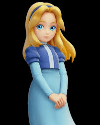 This character was first introduced as "the damsal in distress" in their first appearence, but has played the role of bubbly friend since then and also weilds a hammer.