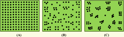 What are are Uniform dispersion, Clumped dispersion, and Random dispersion.