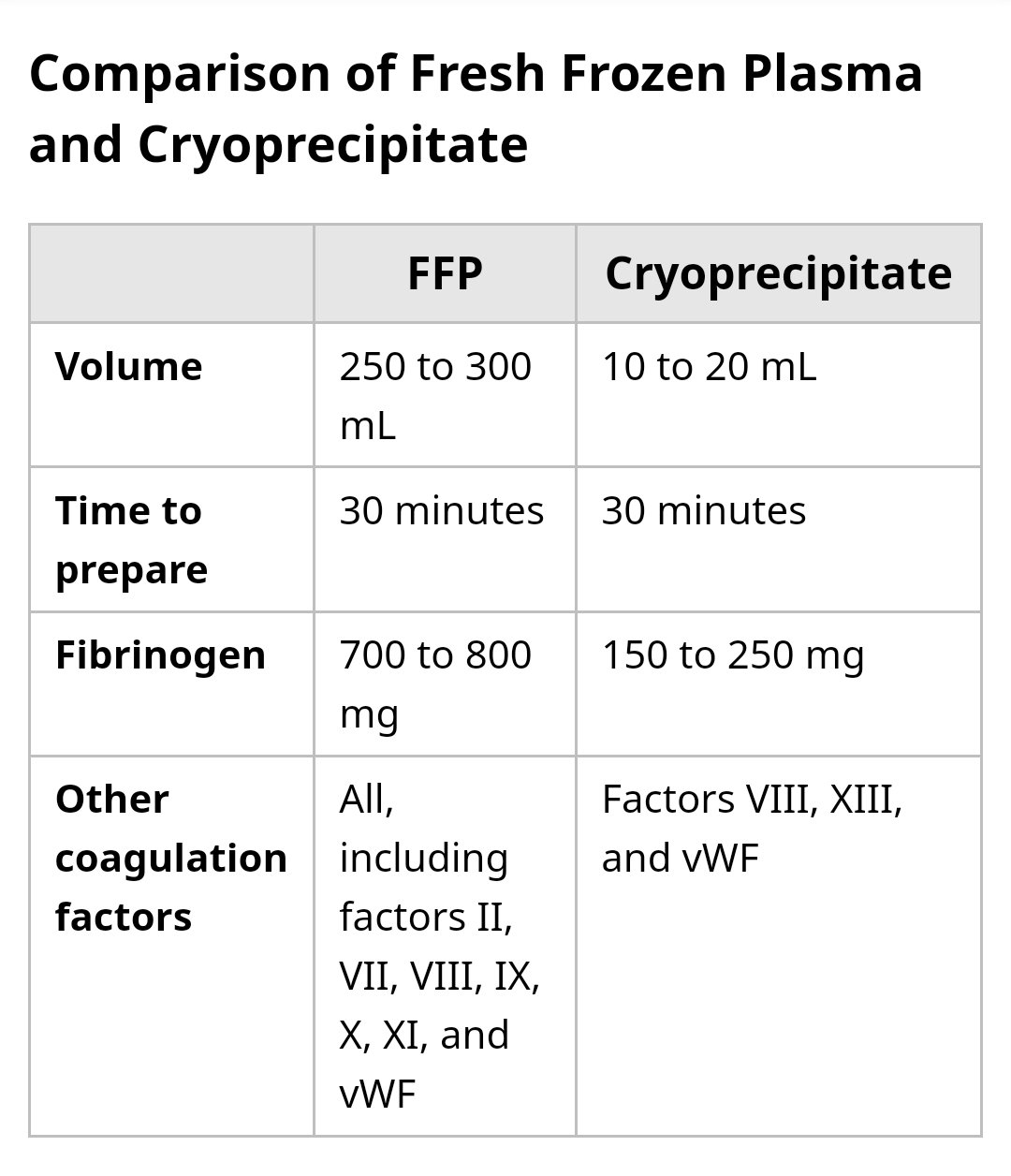 When a massive transfusion protocol is needed, fixed ratios of packed red blood cells, fresh frozen plasma, and platelets should be used. The recommended initial transfusion ratio for packed red blood cells:fresh frozen plasma:platelets has been in the range of this ratio and is designed to mimic replacement of whole blood.