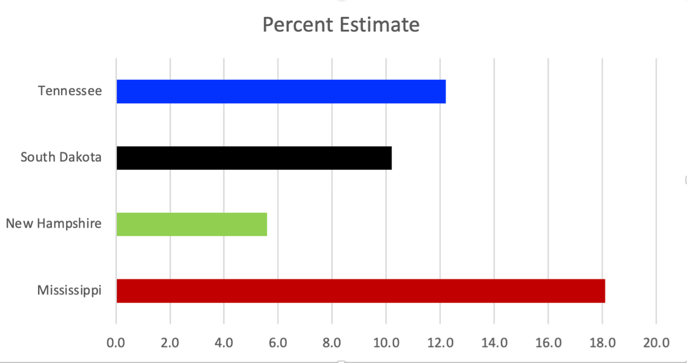 Poverty rates in Kingsport, Tennessee, and the United States.