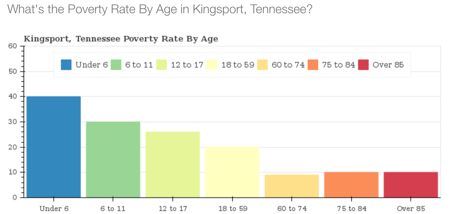 The poverty rate of children under 6 in Kingsport, the highest of any age group.