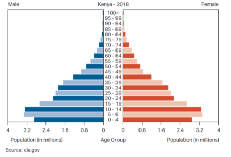 Based on the population pyramid, what can be said about the Total Fertility Rate of Kenya?