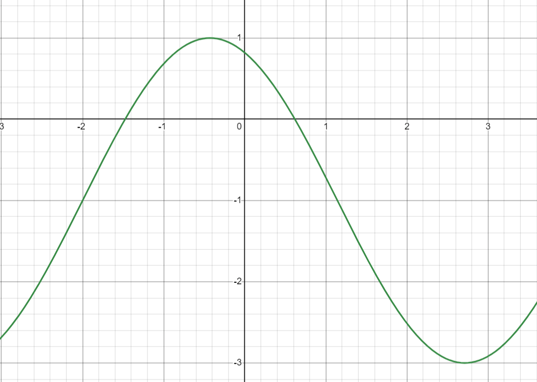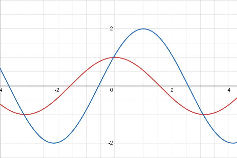 The function f(x)=cos is graphed in red. What is the equation for the blue graph, written as g(x)? (Hint: transformations)