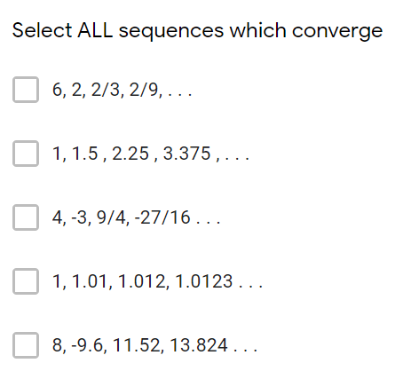 first and third sequences only (1st sequence r = 1/3. third sequence r = -3/4)