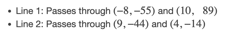 What is the slope that passes through the points (3,8) and (-2, -12)