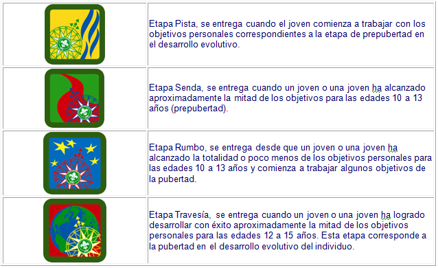 1 especialidad en cada área, estar por terminar Travesía, VAL en amarilla (minimo) y 1 IDS