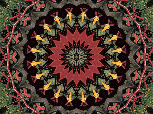 Repeating elements in a pattern that change either in size or color as they repeat.