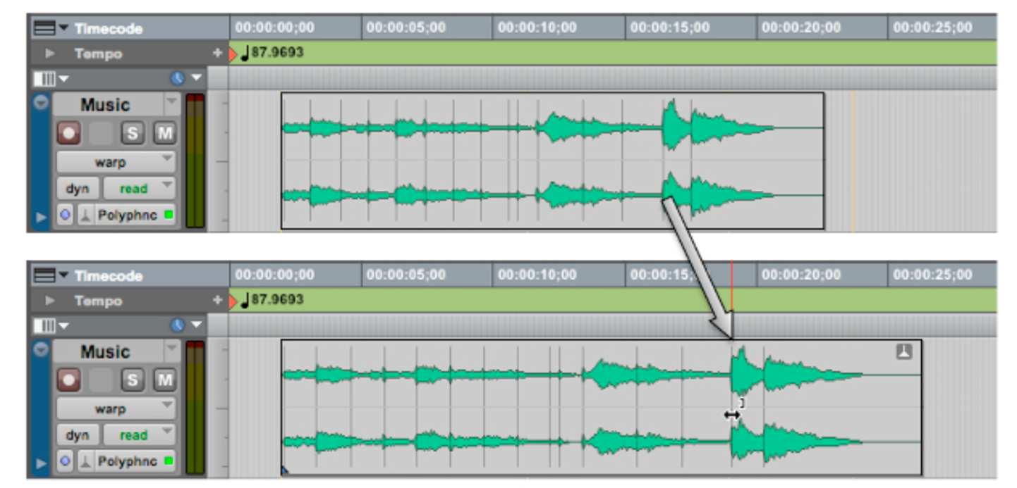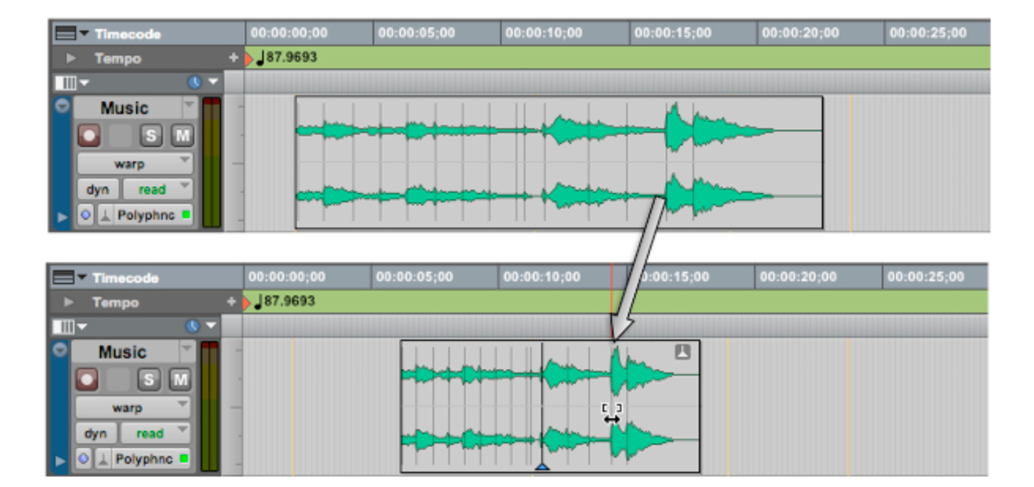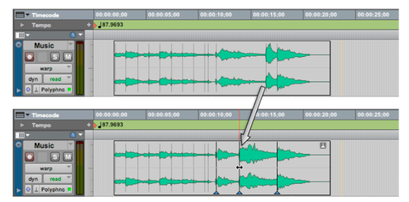 This type of warp lets stretch or compress the entire waveform of a clip relative to its start and end point (see image below)