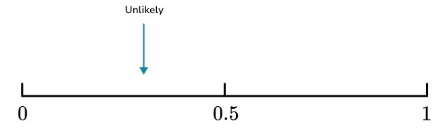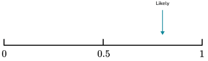 Mark on the scale below, the probability that Caitlin takes a card with the letter E.