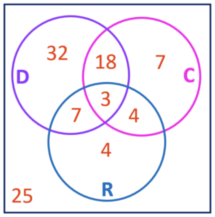 100 people were asked whether they owned a dog, cat or rabbit. List the probability of a person owning exactly 2 pets.