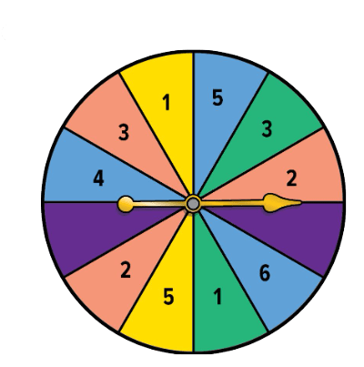 The spinner shown will be spun one time. What is the probability of spinning a 1 or 5?