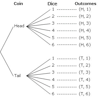 The number of items you would list in the first column of a tree diagram if you want to find how many outcomes you could get by rolling a die twice.