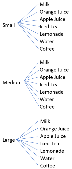 Draw a tree diagram to represent the total number of outcomes. How many total outcomes are possible?
