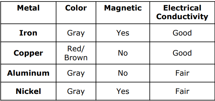 What is they contain a metal (iron) that is attracted to a magnet? Answers for the item will vary.
