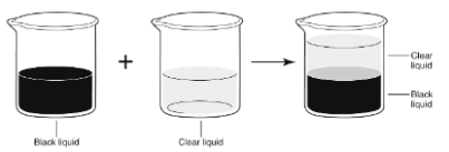 Jessica mixes a black liquid and a clear liquid. She knows the two liquids do not mix well. Jessica allows the mixture to settle for 30 minutes. What can you tell about the density of the 2 liquids in relations to each other?