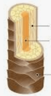 Name the 3 parts of the inside of the hair shaft