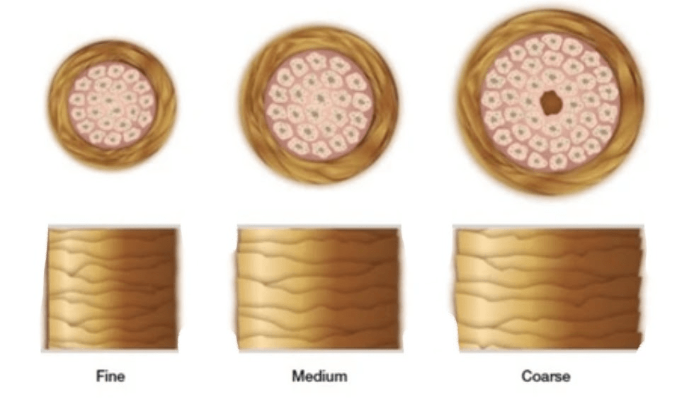 The thickness or diameter of the individual hair strand is referred to as hair: