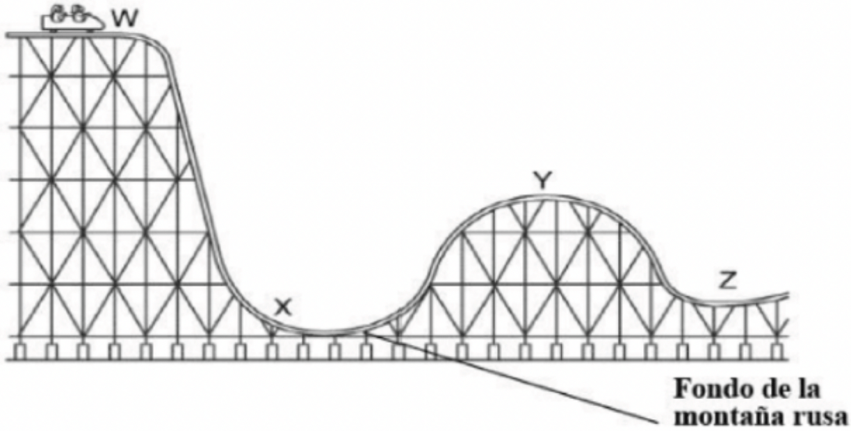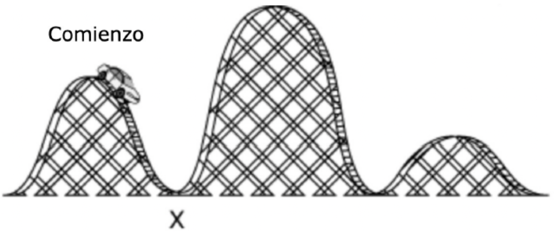 ¿En qué punto de la montaña rusa tendrá el automóvil la mayor cantidad de energía gravitacional?