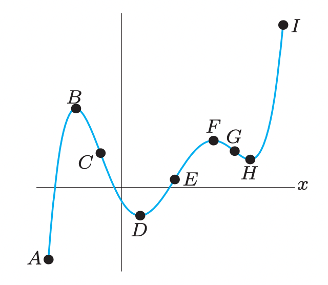 For which pairs of consecutive points int he following figure is the function graphed: increasing & concave up, increasing & concave down, decreasing & concave up, and decreasing & concave down?