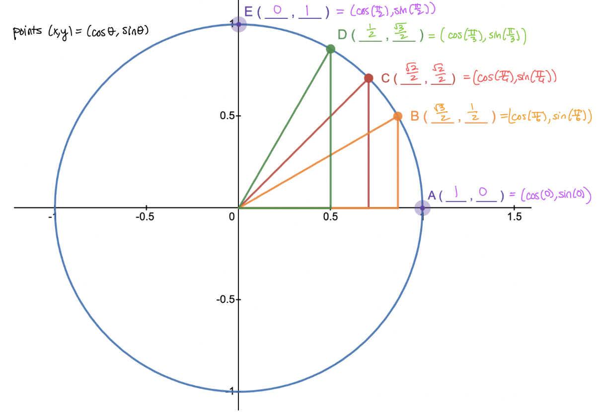 Fill out the first quadrant of the unit circle.