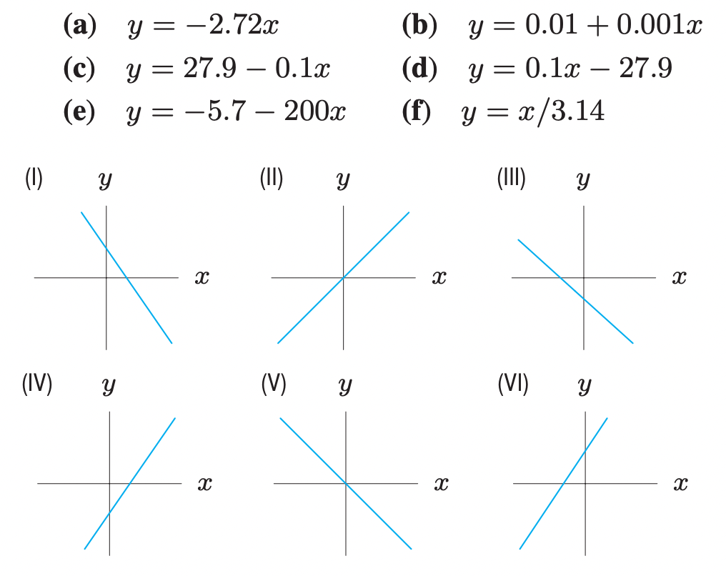 Match the graphs below with the following equations. Note that graphs may not be drawn to scale.