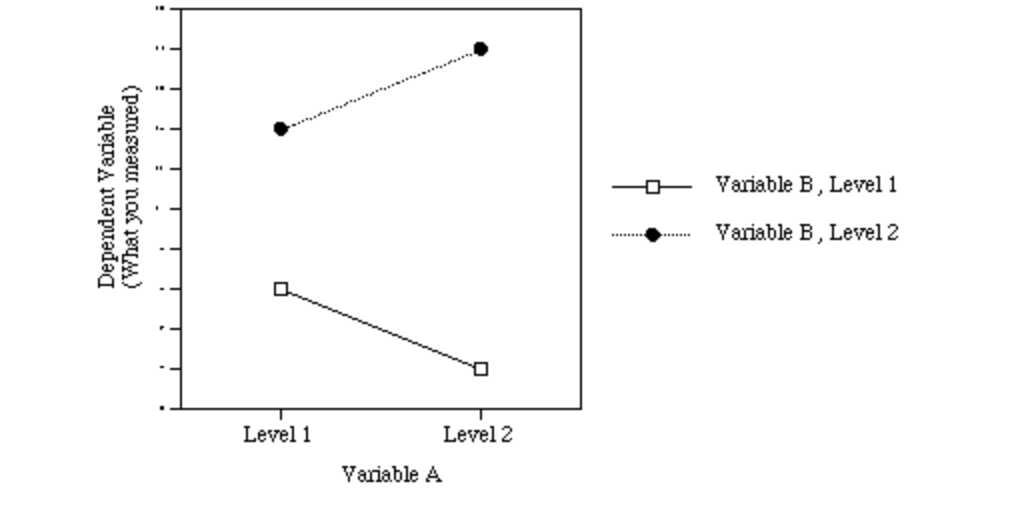 An interaction is a difference across the levels of one independent variable that differs across the levels of the second independent variable.