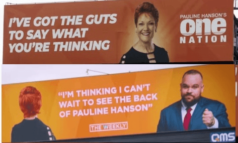 Which Shepparton local created a billboard in response to Pauline Hanson's advertising?