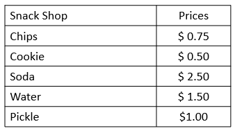 What is the total cost of 2 sodas, 3 waters, 3 chips, 2 cookies, and a pickle?