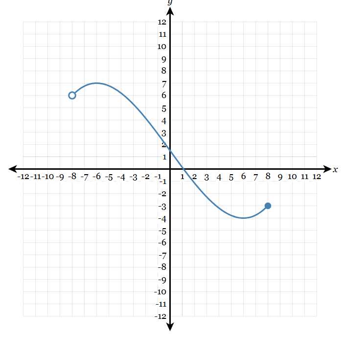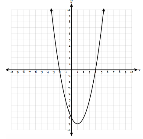 The graph of the quadratic function  y=0.25x^2+1.5x-6.75 is shown below.Given the graph of the quadratic function, find the minimum on the interval  [-1,5] .