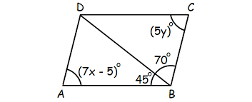 Find x and y in the following parallelogram.